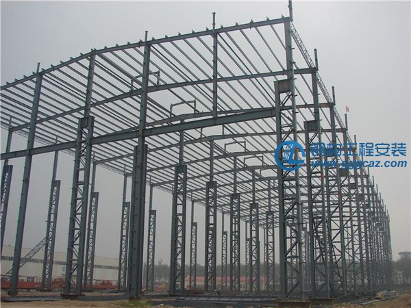 吊装完成后马上要再调整构件之间垂直度及水平度,为确保连续构件间的正确准线,需及时安装柱间支撑及水平支撑及调整这些支撑。调整柱撑应使一边柱撑锁紧另一边放松,当柱已达到垂直度时,则柱撑应该最后锁紧到“拉紧”状况,但不要把斜撑锁太紧而损害构件。从屋檐到屋脊系利用屋脊点为中心点调整水平支撑,并对齐屋顶梁就能保持屋顶垂直。总之只有待调整所有构件垂直度方正后方可锁紧斜撑。
